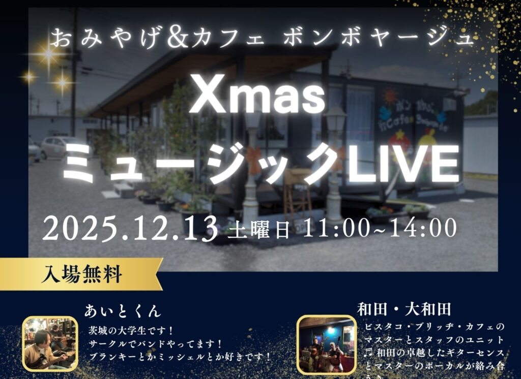 12月13日(土)XmasミュージックLIVEを開催いたします